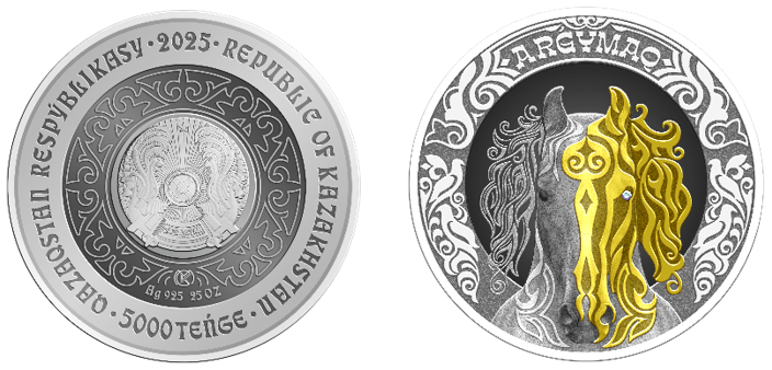 21 окт 2025, 09:56:58 Национальный Банк Казахстана выпускает в обращение коллекционные монеты ARǴYMAQ из серии «Культовые животные – тотемы кочевников». Данная монета завершает серию «Культовые животные – тотемы кочевников». Монета символизирует священного аргымака – одно из главных животных в тюркской культуре, олицетворяющее единство человека и природы. Ее дизайн основан на сочетании натуралистического и трафаретного изображения животного, выполненного в «сакском стиле». Описание монет ARǴYMAQ номиналом 5 000 тенге и 1000 тенге Монеты изготовлены из серебра с применением технологии золочения и бриллиантовой вставки. Монеты имеют идентичные изображения лицевых и оборотных сторон. На лицевой стороне (аверсе) монет в обрамлении национального орнамента размещены год чеканки, номинал, товарный знак Казахстанского монетного двора и надпись, обозначающая металл, из которого изготовлена монета, его пробу и массу. По окружности монеты надпись «QAZAQSTAN RESPÝBLIKASY•REPUBLIC OF KAZAKHSTAN». На оборотной стороне (реверсе) монет размещена композиция из натуралистического и трафаретного изображения головы аргымака с бриллиантовой вставкой диаметром 2 мм в монете номиналом 5 000 тенге и 1 мм в монете номиналом 1000 тенге, в верхней части - надпись «ARǴYMAQ». По периметру расположен широкий кант с элементами декоративного оформления. Монеты номиналом 5 000 тенге (из серебра 925 пробы, масса – 25 oz (777,5 гр.), диаметр – 100 мм, вставка из бриллианта диаметром 2 мм, качество изготовления – «proof», номинал – 5000 тенге тираж – 250 штук;) Монеты номиналом 1 000 тенге (из серебра 925 пробы, масса – 31,1 гр., диаметр – 38,61 мм, вставка из бриллианта диаметром 1 мм, качество изготовления – «proof», номинал – 1000 тенге, тираж – 4 000 штук.) Описание монет ARǴYMAQ номиналом 500 тенге и 200 тенге Монеты изготовлены из сплава мельхиор MH25 качеством «proof-like» и «brilliant uncirculated». На монете качеством изготовления «proof-like» применена технология золочения. На лицевой стороне (аверсе) монет в обрамлении национального орнамента размещены год чеканки, номинал, товарный знак Казахстанского монетного двора. По окружности монеты надпись «QAZAQSTAN RESPÝBLIKASY•REPUBLIC OF KAZAKHSTAN». На оборотной стороне (реверсе) монет размещена композиция из натуралистического и трафаретного изображения головы аргымака, в верхней части надпись «ARǴYMAQ». По периметру расположен широкий кант с элементами декоративного оформления. Монеты номиналом 500 тенге (из сплава мельхиор, масса – 15 гр., диаметр – 33 мм, качество изготовления – «proof-like», номинал – 500 тенге тираж – 7 000 штук) Монеты номиналом 200 тенге (из сплава мельхиор, масса – 11,17 гр., диаметр – 31 мм, качество изготовления – «brilliant uncirculated», номинал – 200 тенге, тираж – 15 000 штук) 2 Поделиться сообщением Ссылка на сообщение Поделиться на другие сайты