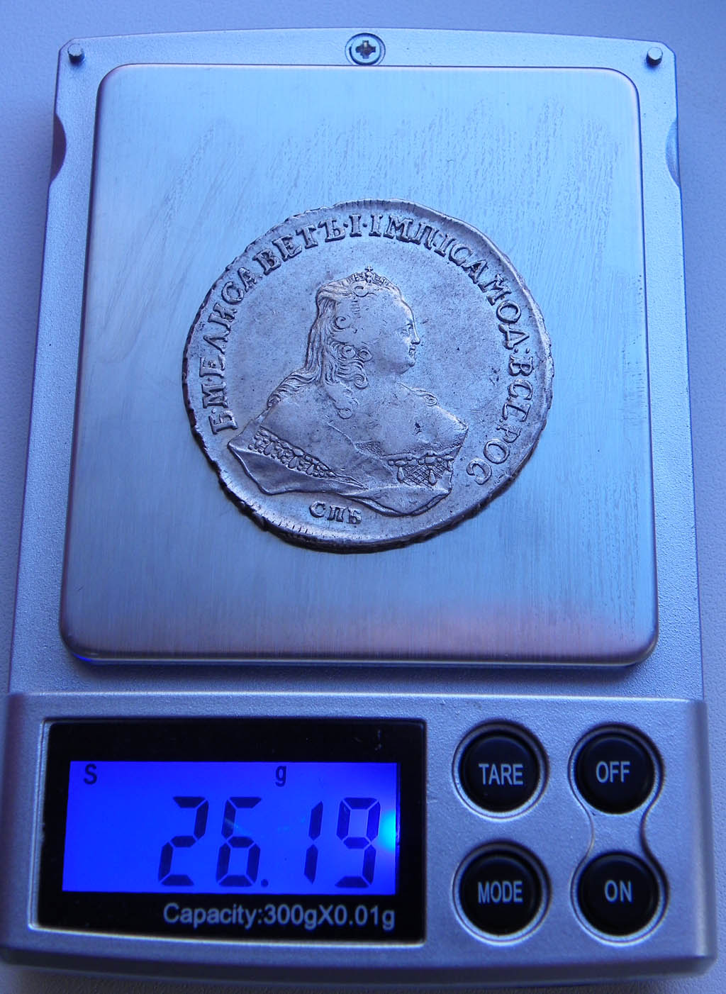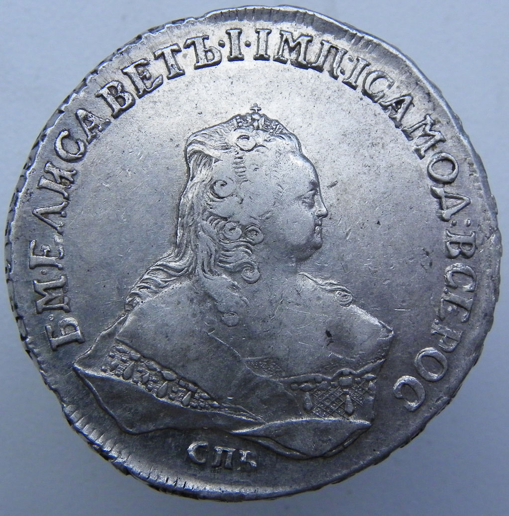 Рубль: Елизавета Петровна - 1754 год СПБ ЯI (портрет работы Т. Лефкена)