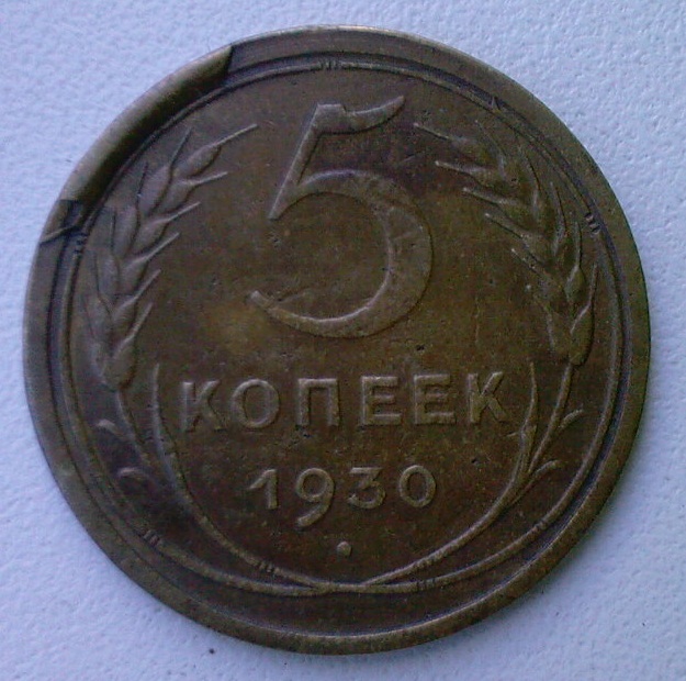 5 копеек 1930 г. Скол штемпеля - брак! До 30.05 в 22.00