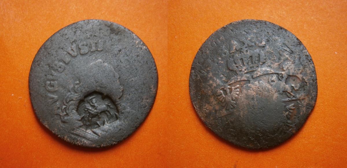 Может у кого есть другие примеры контрмарк на поздней польской меди времени Августа Толстого?