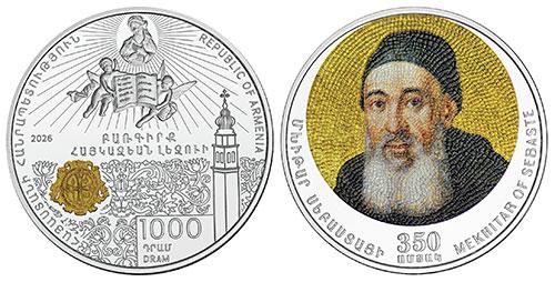 Центральный банк Республики Армения вводит в обращение серебряную памятную монету номиналом 1000 драм Мхитар Себастаци-350