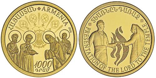ЦБ Республики Армения выпустил  юбилейную золотую монету номиналом 1000 драм Сретение Господне