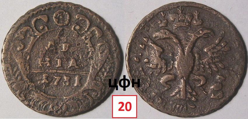 2 ноя 2013, 10:43:30 (изменено) 1736. Денги временного двора Площильной мельницы на реке Яузе и Екатеринбургского двора. Аверс: Двуглавый орёл увенчанный тремя коронами. В лапах орла: в правой - скипетр, в левой - держава с крестом. Реверс: В рамке, украшенной арабесками, надпись номинала и года. По бокам две лавровые ветви. Внизу две скрещенные пальмовые ветви связанные бантом. Над годом две черты. Изображение увенчивает розетка (V, VI шаблон) Гурт: сетчатый. ================================================= Московская 1 - аверс: орёл образца 1734-35гг., девять перьев в одном крыле и десять в другом, хвост орла - по три ряда перьев с каждой стороны, крест державы простой реверс: шаблон №5, розетка образца 1734г., пятилепестковая, в форме цветка с прожилками, боковые ветви - по девять листочков с каждой стороны, нижние ветви с обвязкой (бантом) монета встречается часто ================================================= Московская 2 - аверс: орёл образца 1734-35гг., девять перьев в одном крыле и десять в другом, хвост орла - по три ряда перьев с каждой стороны, крест державы простой реверс: шаблон №5, розетка образца 1734г., пятилепестковая, в форме цветка с прожилками, боковые ветви - одиннадцать листочков с одной стороны и десять с другой, нижние ветви акантовые с обвязкой (бантом), цифра 6 в дате маленькая монета встречается намного реже ================================================= Московская 3 - аверс: орёл образца 1736г., девять перьев в одном крыле и десять в другом, хвост орла - по три ряда перьев с каждой стороны, крест державы простой, центральная корона открытая реверс: шаблон №5, розетка образца 1734г., пятилепестковая, в форме цветка с прожилками, боковые ветви - по одиннадцать листочков с каждой стороны, нижние ветви с обвязкой (бантом) монета встречается намного реже ================================================= Московская 4 - аверс: орёл образца 1734г., девять перьев в одном крыле и десять в другом, хвост орла - по три ряда перьев с каждой стороны, крест державы простой реверс: шаблон №5, розетка образца 1734г., пятилепестковая, в форме цветка с прожилками, боковые ветви - по одиннадцать листочков с каждой стороны, нижние ветви без обвязки (банта) монета встречается намного реже ================================================= Московская 4а - аверс: орёл образца 1734г., девять перьев в одном крыле и десять в другом, хвост орла - по три ряда перьев с каждой стороны, крест державы простой, центральная корона открытая реверс: шаблон №5, розетка образца 1734г., пятилепестковая, в форме цветка с прожилками, боковые ветви - по одиннадцать листочков с каждой стороны, нижние ветви без обвязки (банта) монета встречается намного реже ================================================= Московская 4б - аверс: орёл образца 1734г., девять перьев в одном крыле и десять в другом, хвост орла - по три ряда перьев с каждой стороны, крест державы простой, малые короны больше реверс: шаблон №5, розетка образца 1734г., пятилепестковая, в форме цветка с прожилками, боковые ветви - по десять листочков с каждой стороны, нижние ветви без обвязки (банта) монета встречается намного реже ================================================= Московская 5 - аверс: орёл образца 1734-35гг., девять перьев в одном крыле и десять в другом, хвост орла - по три ряда перьев с каждой стороны, крест державы простой, навершие скипетра в форме креста реверс: шаблон №5, розетка образца 1734г., пятилепестковая, в форме цветка с прожилками, боковые ветви - по одиннадцать листочков с каждой стороны, нижние 