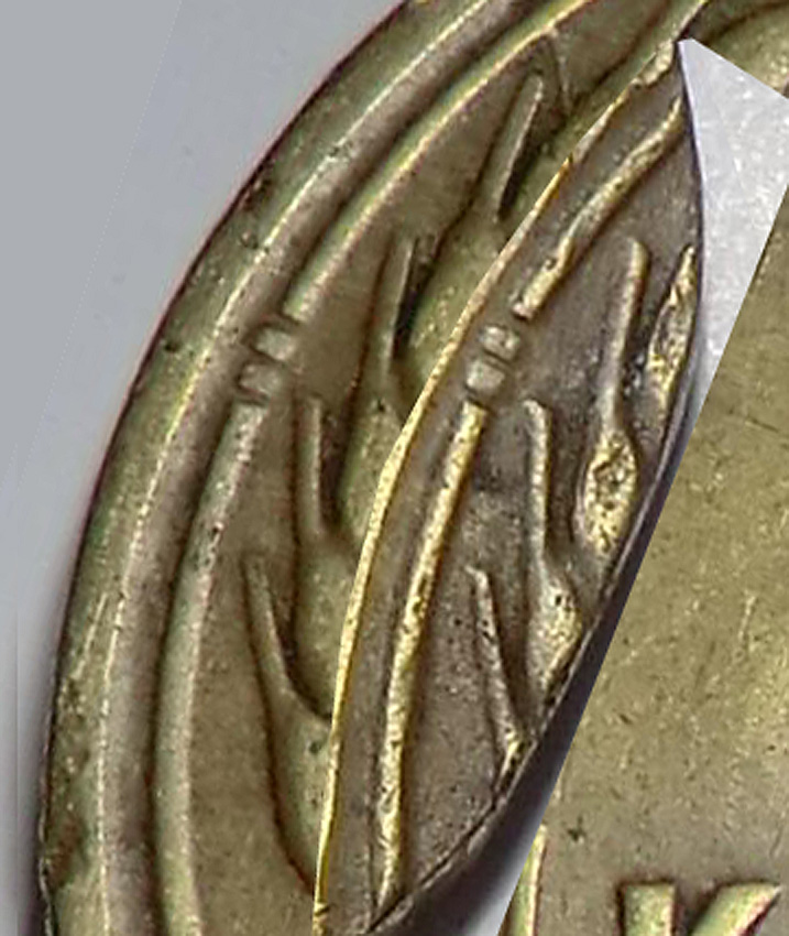 ...вследствие попадания уже отчеканенной монеты в чеканочный узел между штемпелем и ЗАГОТОВКОЙ!!! Отсюда и отсутствие рельефа аверса, так как монета второй раз чеканилась только штемпелем реверса, с другой стороны между этой монетой и штемпелем аверса уже была другая заготовка!