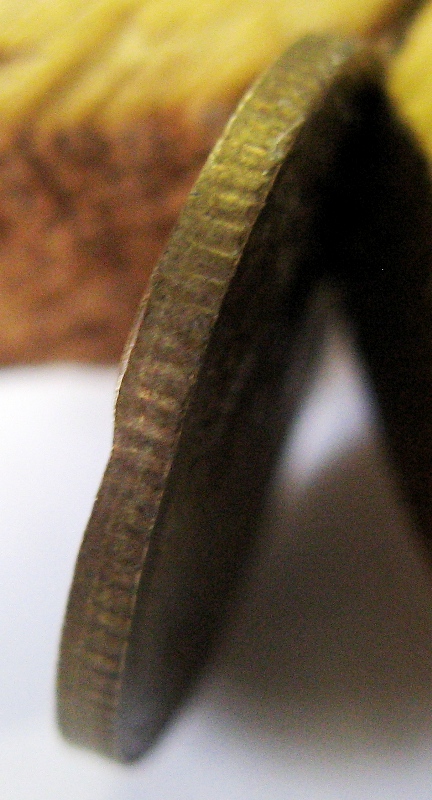Тут есть и характерная ложбинка канта, и выступивший облой, иллюстрация того, что бутерброд был чеканен в кольце.