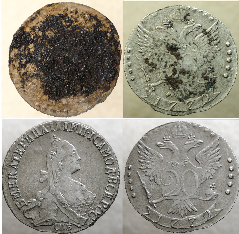 8 янв 2014, 14:20:13 Смотрю на корону и счетные точки справа от нее на втором и четвертом фото (слева направо) и вижу: весьма прилично уели Вы химией монетку ...Ну как же без Серка-то? Он как я понимаю специально выискивает темы, аль напоминалка у него стоит... Любезнейший. докладываю - монетку уел не я химией, а яблоневый сад, в которой она провалялась 200 с лишним лет, поливаемая удобрениями и гнилыми яблоками. Это кстати ответ на "агрессивную почву" Собственно, чего спорить? Как уже сказано, сделайте лучше. 0 Поделиться сообщением Ссылка на сообщение Поделиться на другие сайты