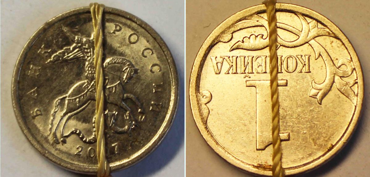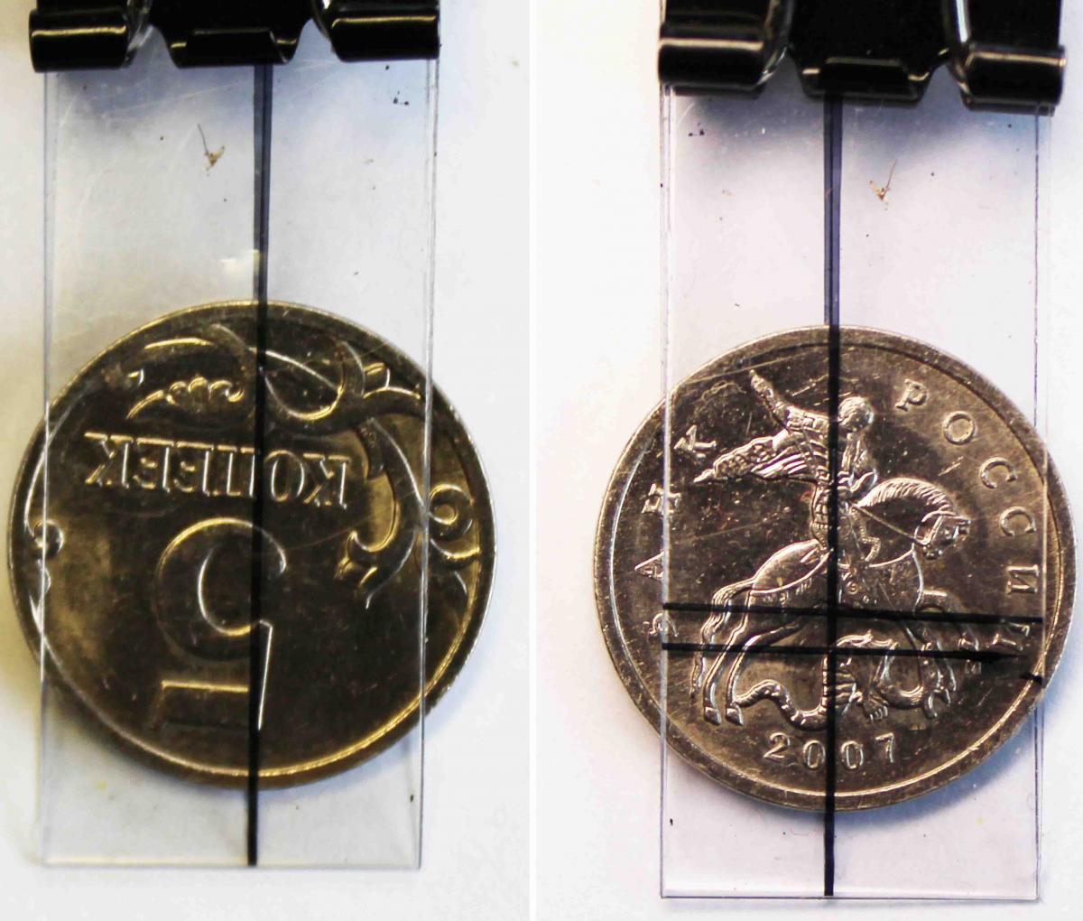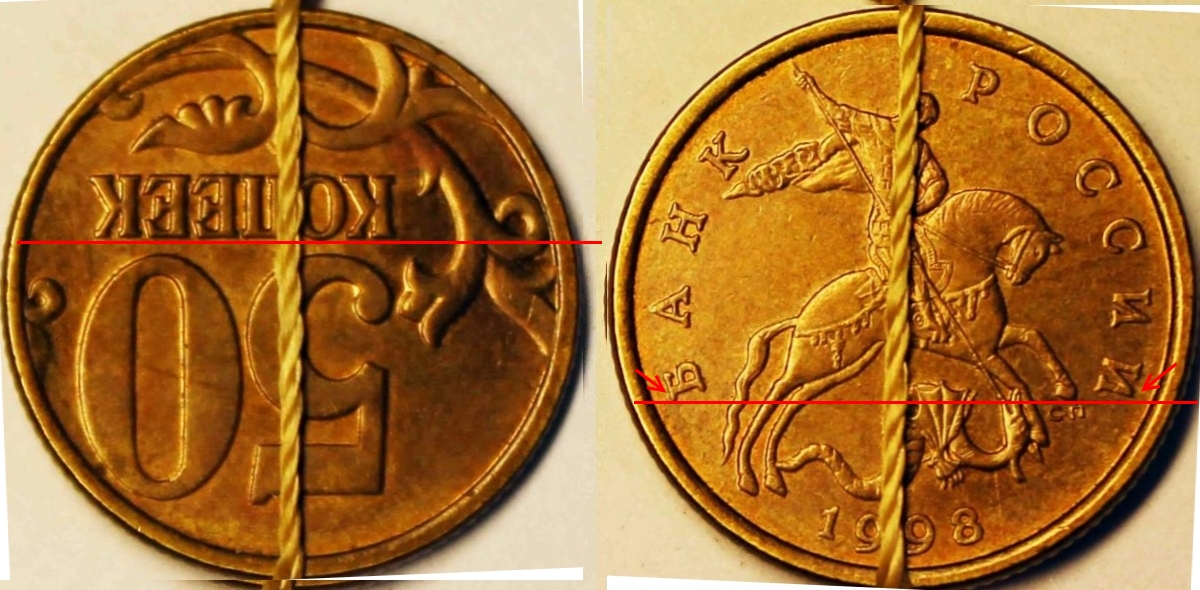 Горизонталь аверсов на копеечных номиналах определяется по низу начала и конца надписи "Банк России".
