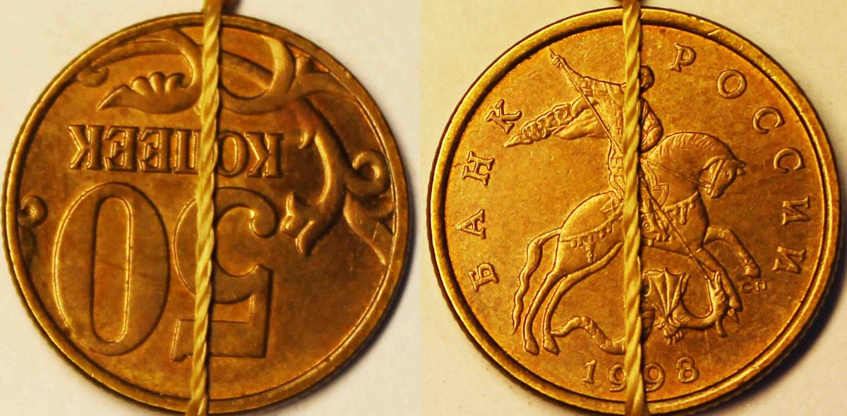 Вот полтинник, верёвочка тоже, наверное, не по центру.