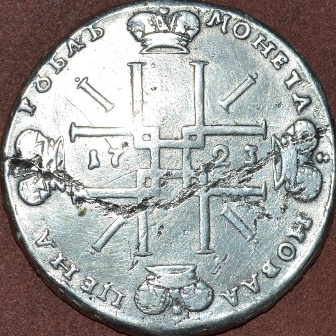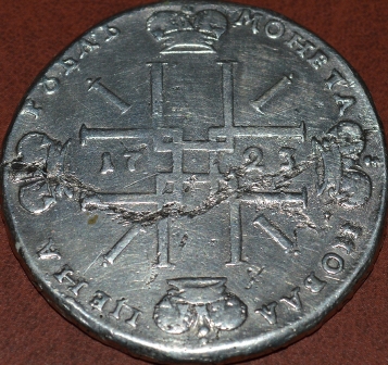 Недавно показывал рубль Петра 2 с орденской лентой, в асфальт закатали из-за подозрения на реставрацию.