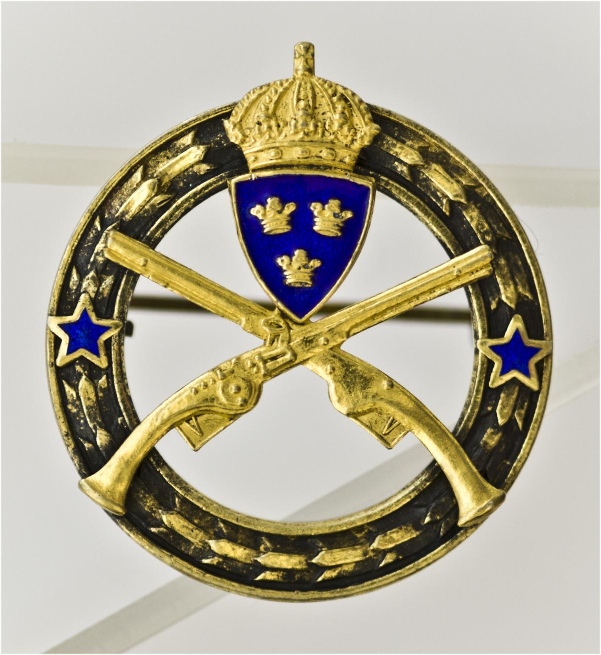 Знак за отличную стрельбу. 60-е г. XX столетия. Швеция. Бронза, эмаль, позолота. Диаметр 25 мм.