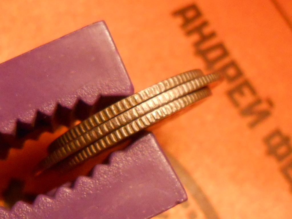 30 ноя 2014, 20:41:53 При таком весе возможно монета изготовлена из листа для монет номиналом "15 КОП.", либо как вариант из "края листа" ( подобное определение не раз обсуждалось на Форуме), но ни как не из листа для "10 КОП" - т.к. тогда вес должен был бы быть = 2,20-2,30 максимум (ИМХО - для монет данного периода). С В.Игорь Из листа под 15к. ~2,3гр., сами 15 к. из листа по 10к. в приведённый вес (2,20-2,30) укладываются, а 20к. из листа 10к. как раз выходит 2,7-2,8гр. 0 Поделиться сообщением Ссылка на сообщение Поделиться на другие сайты