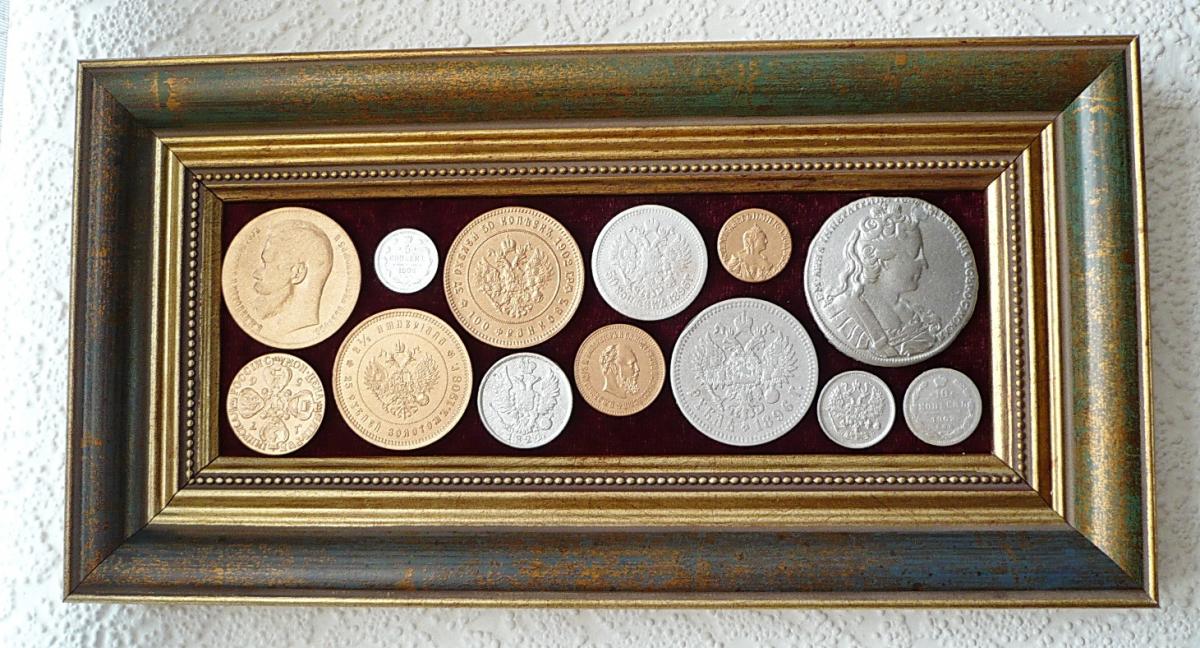 20 фев 2015, 15:01:45 Красиво! Но живые(настоящие) монеты лучше греют в руках, под стеклом же и эти копии неотличимы от подлинников даже при кратном увеличении, и интерьер украсят не хуже, а в чём-то даже выигрывают. Нет риска утраты ценной монеты, большая свобода в композиционных решениях за счёт магнитного панно ну и ещё соображения имеются . Есть кое-какие новинки в копиях, покажу может быть завтра (если успею). Поделиться сообщением Ссылка на сообщение Поделиться на другие сайты