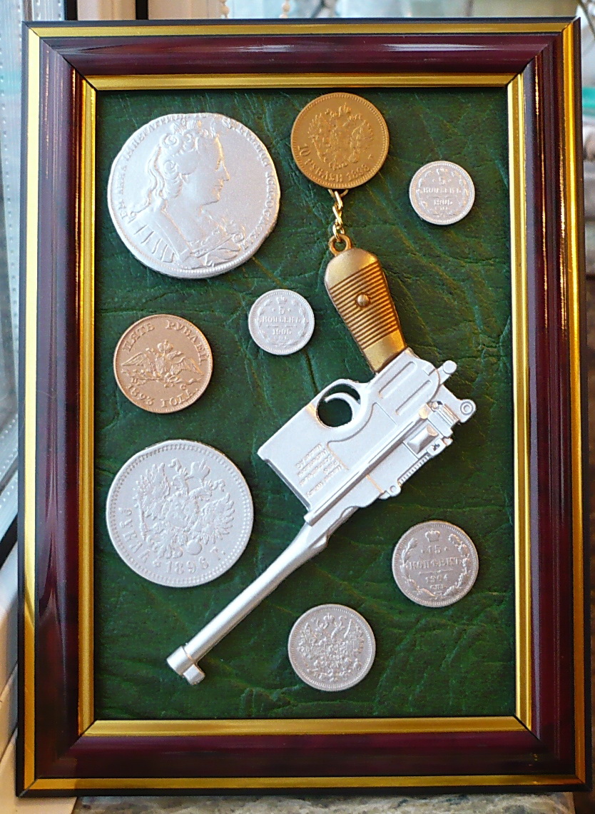 27 янв 2015, 15:18:19 За отзыв спасибо огромное ,рад что понравилось Немного попытаюсь упорядочить что есть в ассортименте на данный момент. Получился 31 предмет. 31-й это 3-х мерная копия маузера, попробовал сделать - получилось . В дальнейшем придумаю куда приспособить, например на цепочке подвесить к 5-ти рублёвкам Николая 2 (к парочке). По временному периоду подойдёт . Поделиться сообщением Ссылка на сообщение Поделиться на другие сайты