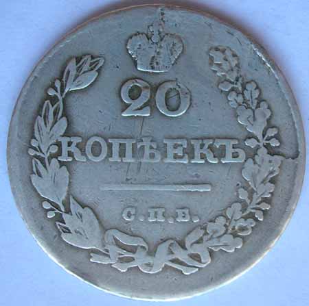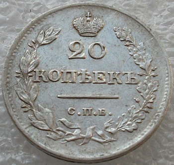 10 фев 2015, 08:53:56 Продолжу тему, представленная мной двадцатка 1823 года имеет на аверсе инициалы минцмейстера Павла Данилова, ну а двадцатки 1826 года со старым аверсом, уже инициалы Николая Грачёва, перебирая материал, обнаружил старый реверс, с 1823 года, уже с аверсом нового минцмейстера, впечатление, что реверс даже не удосужились привести в порядок, власть сменилась, минцмейстер другой, а поставили, что было, не знаю, может ни чего интересного в этом, но всё же. 0 Поделиться сообщением Ссылка на сообщение Поделиться на другие сайты