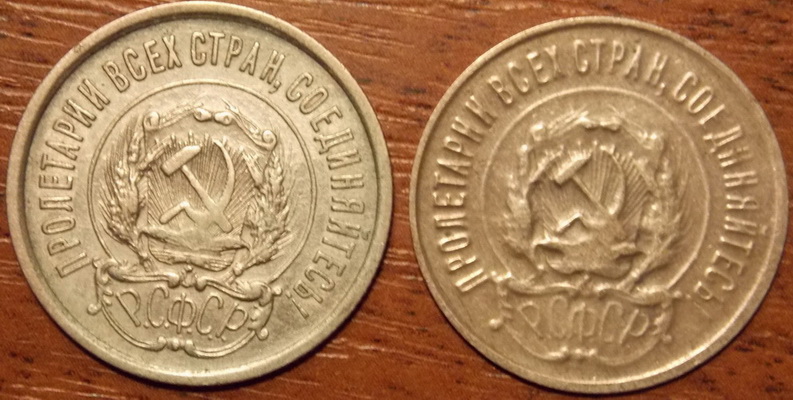 18 фев 2015, 21:11:33 Здравствуйте. Вот попалась такая монетка - 20 копеек 1921 г. Может отчеканилась на левом листе (сначала думал на 15 копеечном, но сейчас большие сомнения), может брак какой-то, а может вообще фуфел, но очень странный. Кстати - на какие-то доли она меньше по диаметру. Предоставляю фото. На фото 5 - гурты с монетами 20 коп 1921, 15 коп 1921 и эта (слева направо). На фото 3 - реверсы для сравнения (эта монета справа), фото 4 - аверсы для сравнения (взята монета 20 коп 1923 года с длинными остями, т.к. имеющаяся 1921 - с короткими) (эта монета слева). Прошу помочь экспертам разобраться. 0 Поделиться сообщением Ссылка на сообщение Поделиться на другие сайты