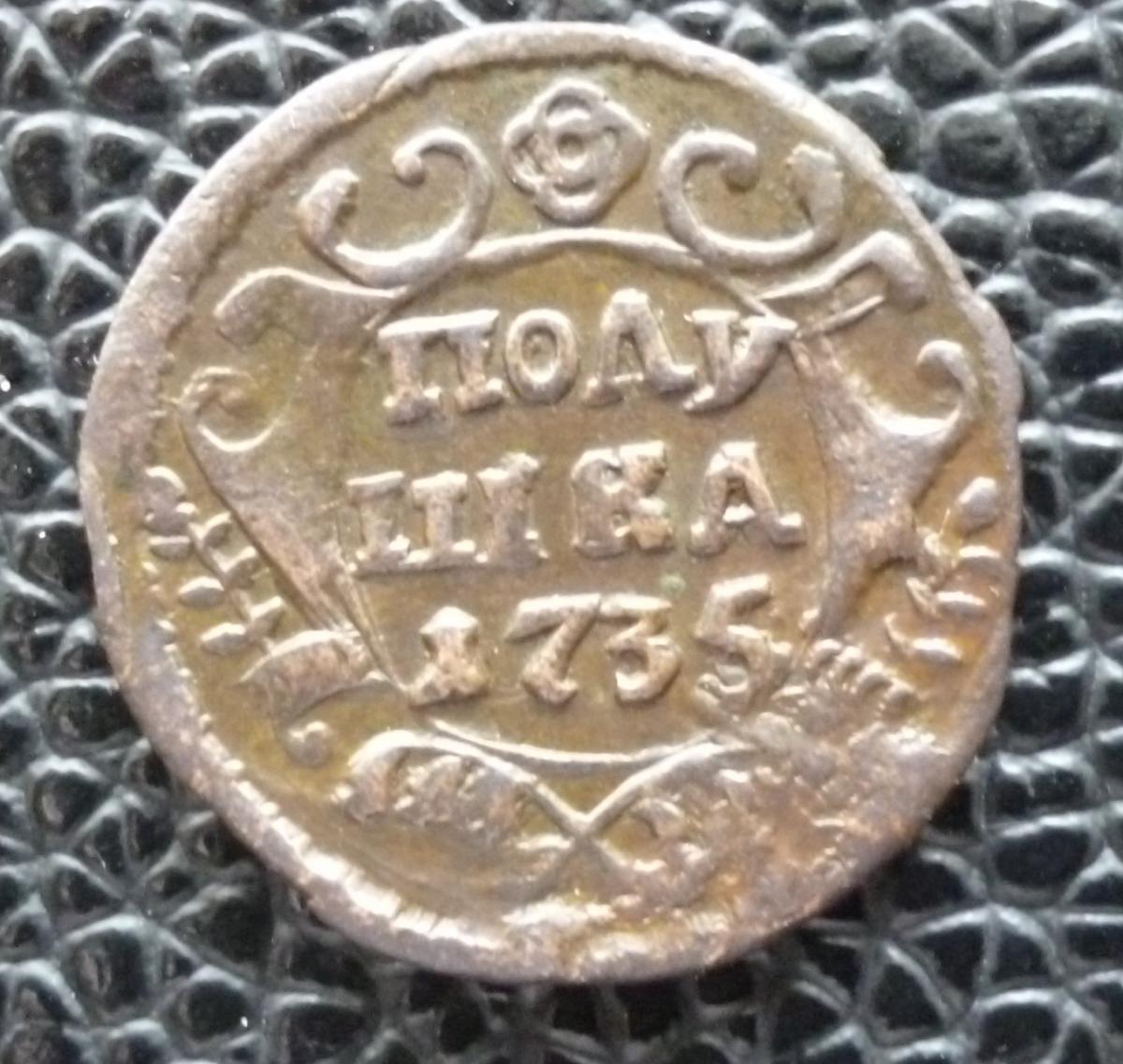 Как выяснили монеты не прошедшие гурчение не редкость Полушка 1739 безгуртовая.
