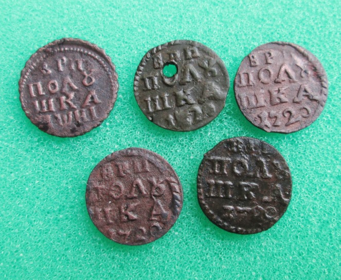 27 апр 2015, 13:24:28 приветствую . скажите интересная полушка , гурт шнур , но в литературе пишут,что должен быть гладким. и остальные 1720 , одна с отверстием , наверное нашею вешать хотели. фото не очень , всё что с мыльницы выжал 0 Поделиться сообщением Ссылка на сообщение Поделиться на другие сайты
