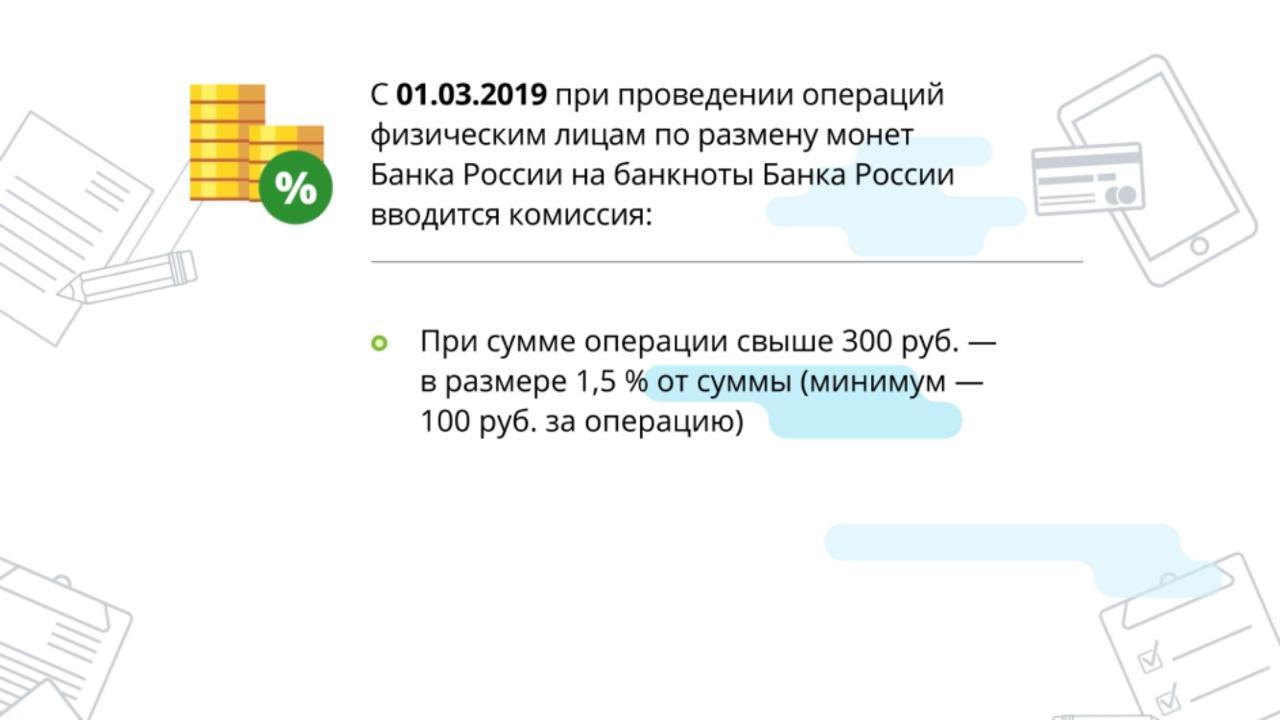 16 фев 2019, 11:05:59 Добрый день!А ещё,я вчера зашёл в два отделения Сбербанка, хотел мелочь взять,в наличии было мало,2р-560и 1р-440=1000руб.,а насчёт заказать,мне ответили что с февраля больше заказывать нельзя! Это у всех так? С уважением 0 Поделиться сообщением Ссылка на сообщение Поделиться на другие сайты