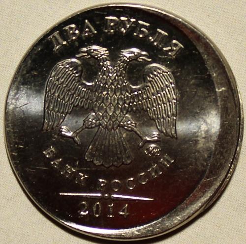 2 рубля 2014 года брак МД смещение двух стороннее, редкий?