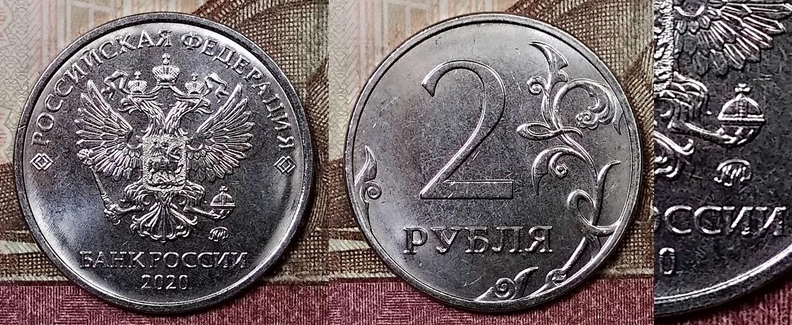 Приветствую. На безрыбье, как говорится.. 2 рубля 2020 года - аверс меньше,знак сдвинут вправо
