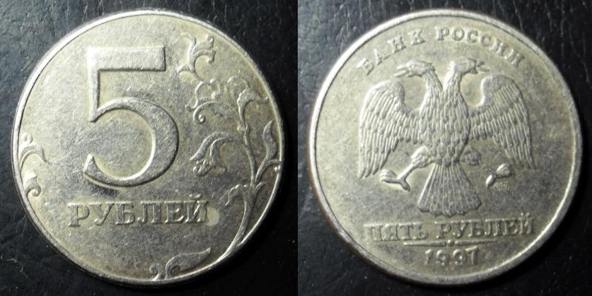 5 рублей 1997 СПМД. Вес 6,37 гр.