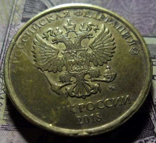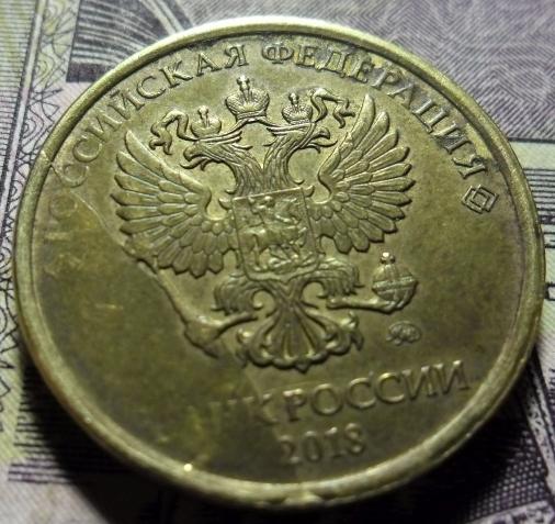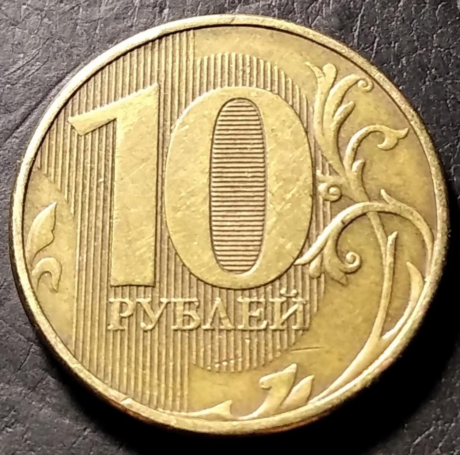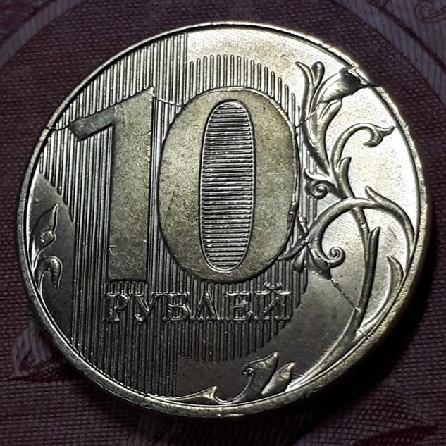 10 рублей 2018 года ММД брак раскол скол.