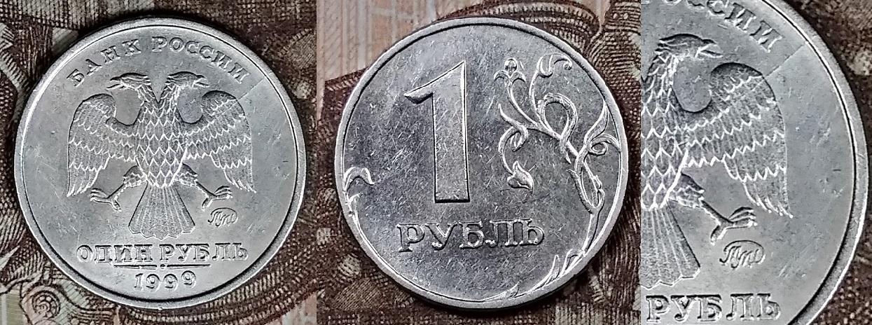 Приветствую. 1 рубль 1999 года, ММД. Брак-неполный раскол аверса. Попался  впервые. Такой раскол уже находили?