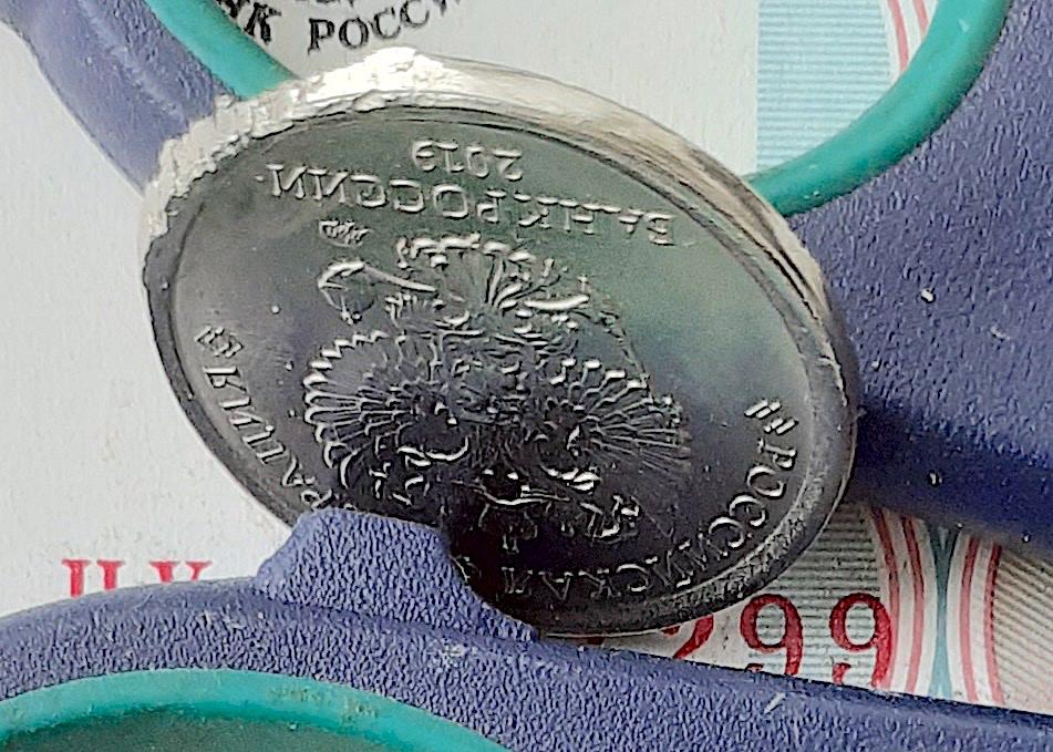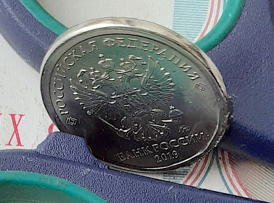 Всем привет. Попался 1 рубль 2019ММД. Браковище-Брачище. Чекан вне кольца, грибок, гладкий гурт, деформации при выбросе - следы и срезы от чеканочного кольца. Магнит, масса 3,1 гр
