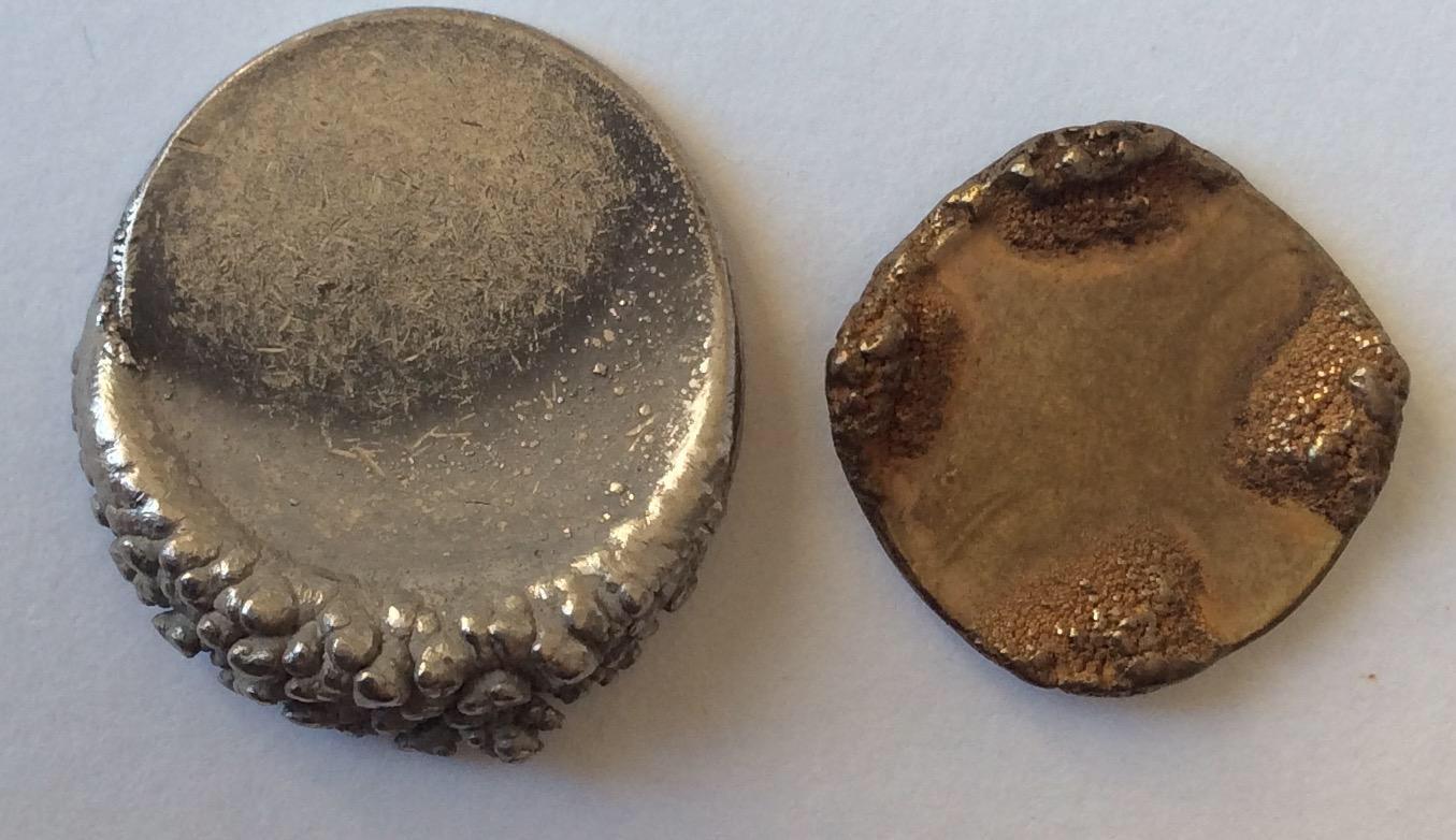 Возникает на стадии гальванопокрытия заготовок, когда заготовка по какой-то причине лежит в гальванической ванне несколько циклов. Вес таких заготовок, как правило, больше стандартных.