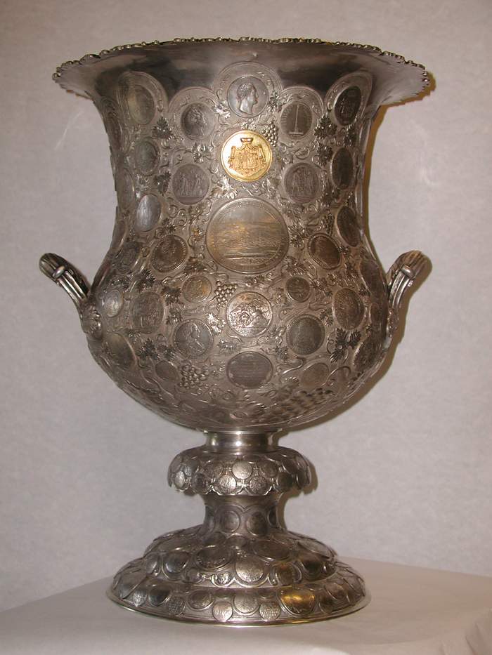 Чуть уточню. Это кубок или ваза изготовленная в Варшаве в 1850 году мастером К.Ф. Мальчем по заказу Генерал-фельдмаршала И.Ф. Паскевича. Сразу скажу предмет музейный.