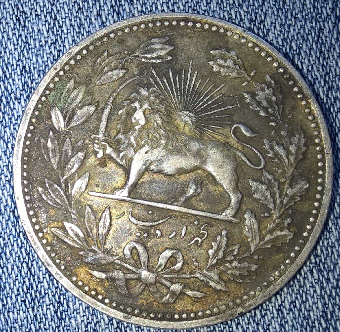 Ув. Artem93 представил на обозрение серебряную монету достоинством 5 кран, отчеканенную, как уже было сказано выше, на СПб монетном дворе в 1902 году (на монете год по календарю лунной хиджры 1320AH), в период правления иранского шаха Музаффар ал-Дина (1313-1325AH) династии Каджаров.
