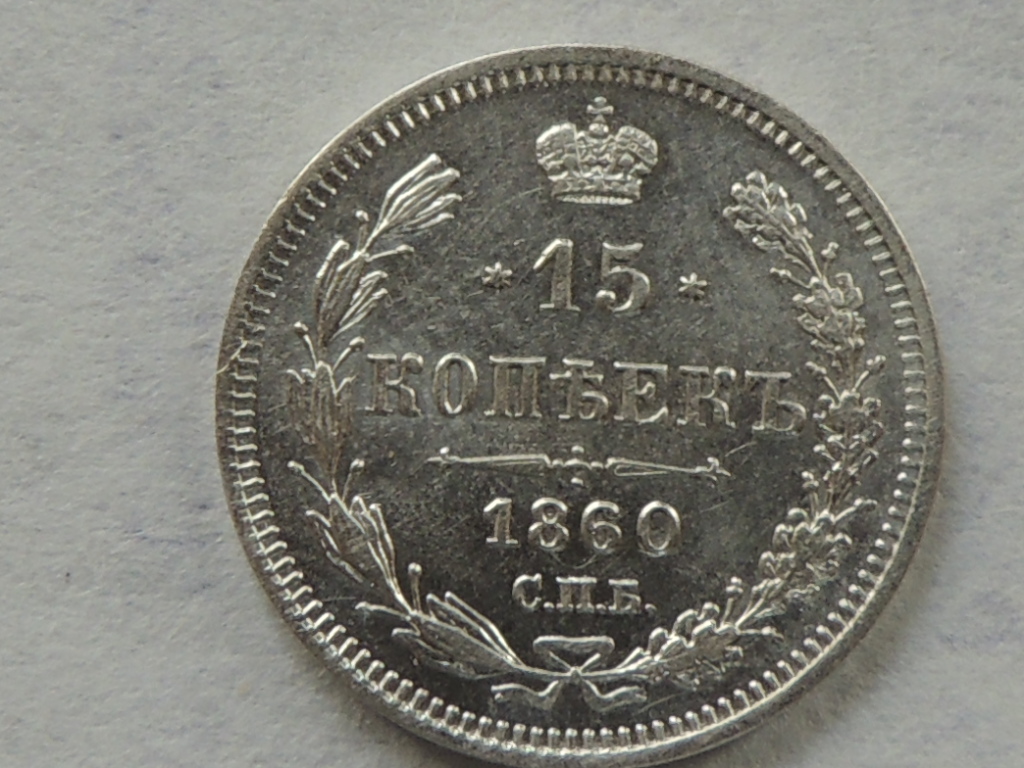 15 копеек 1860 Хвост шире. Биткин # 183 ,если не ошибаюсь, по разновидности; монета хорошая, VF+,по цене ?, но более 1000 руб.
