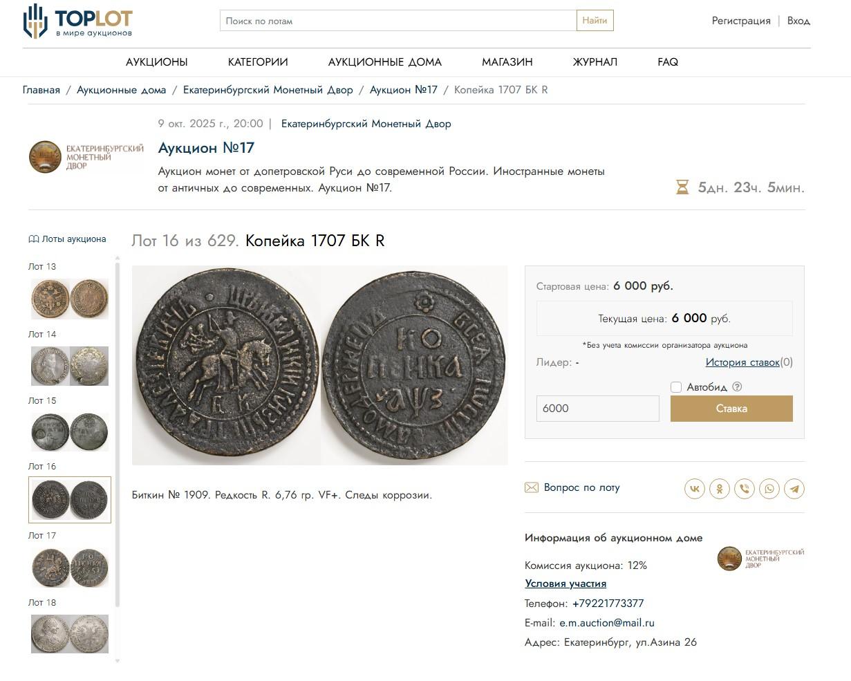 20 окт 2025, 08:21:24 5 коп 1765 без букв в слабе PCGS... Нелегкая судьба занесла этот несчастный фуфел "в высшем грейде" на очередной аукцион - Аврора. Май 2025 - аукцион Александр, Июнь 2025 - аукцион Лишние Деньги, Сентябрь 2025 - аукцион Гермес, 23 октября на Авроре, поторопитесь, лидирующая ставка всего 330 тыс.рублей! 1 Поделиться сообщением Ссылка на сообщение Поделиться на другие сайты