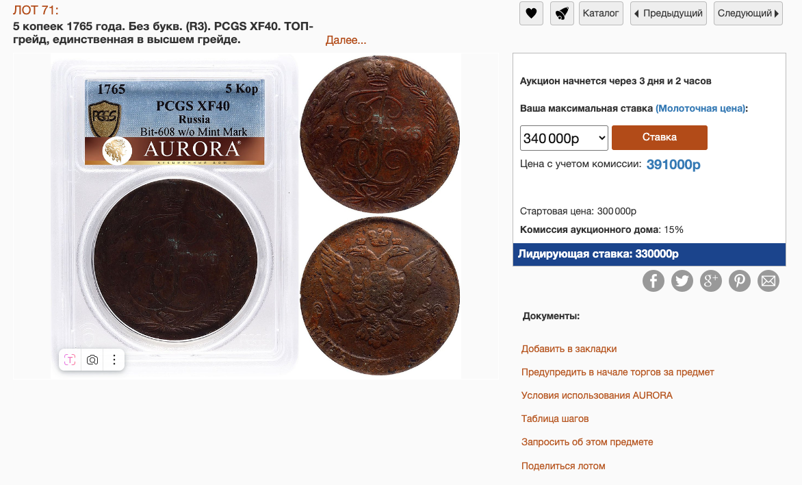 17 июн 2025, 11:08:52 (изменено) Александр 15 мая 2025 и коробка PCGS. Позорище как грейдеру, так и аукциону. 5 копеек 1765 "без букв" (в миру - ЕМ со срезанными буквами). Изменено 17 июн 2025, 11:09:50 пользователем Esromeron 6 Поделиться сообщением Ссылка на сообщение Поделиться на другие сайты