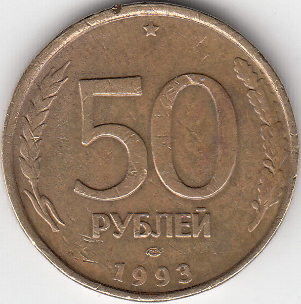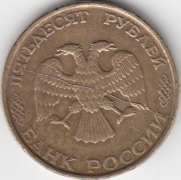 50 рублей 1993 г. Полный раскол.