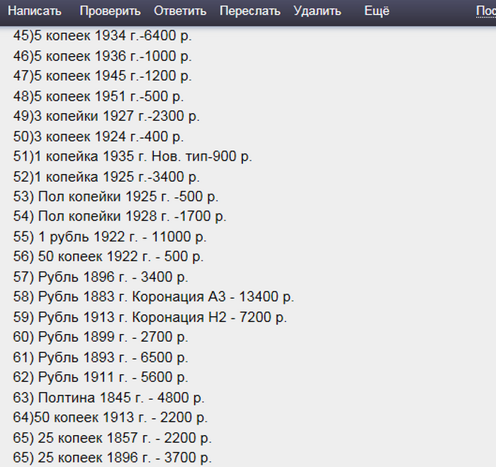 Получил сегодня на мыло письмо от некто с предложением покупки монет. Цены бросовые, но дело в том, что эти же монеты продаёт другой продавец на Новом Молотке совсем по другим ценам.
