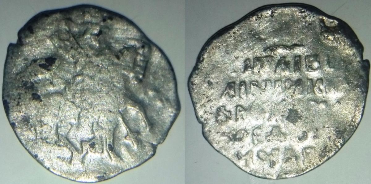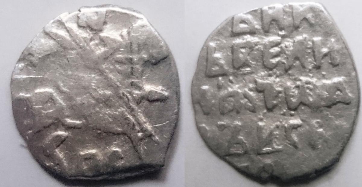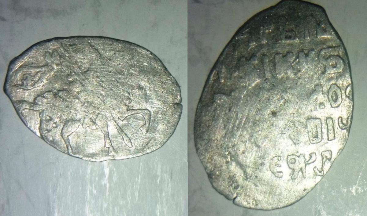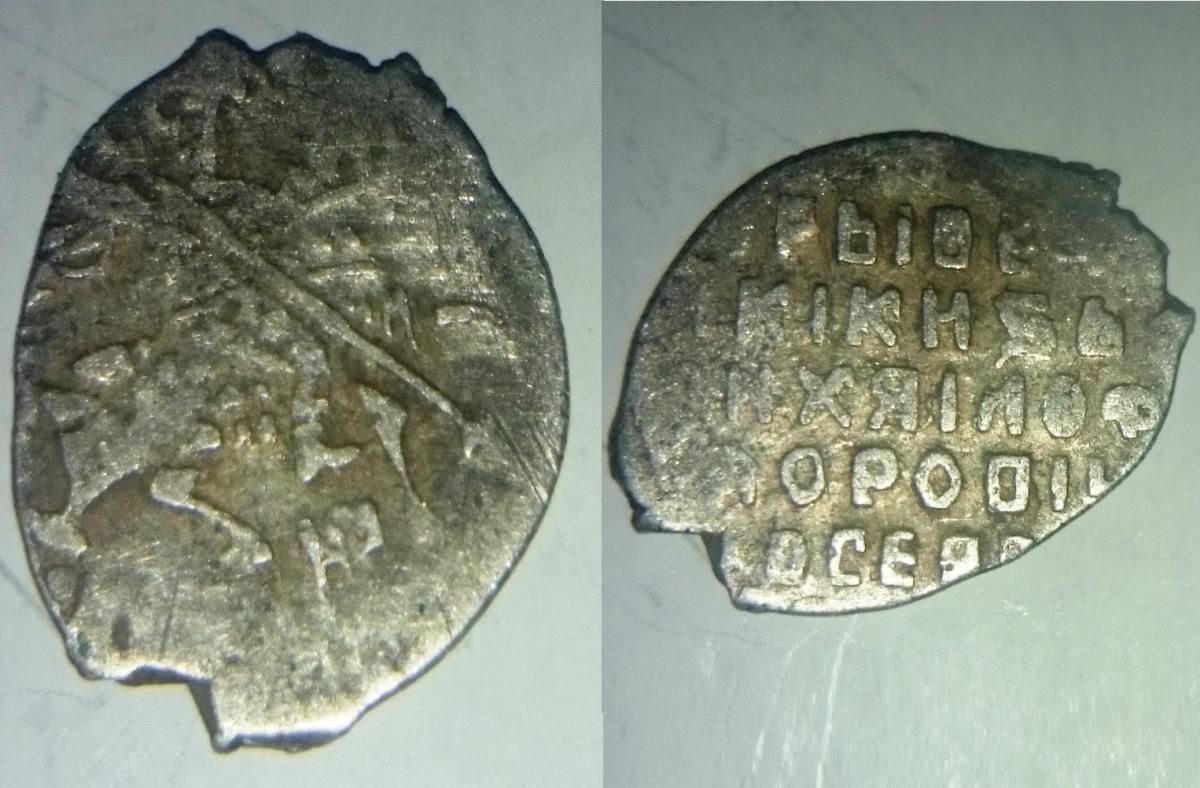 Раньше эту монету относили к псковской чеканке 2го Ополчения. Сейчас есть мнения, что это скорее период Михаила Федоровича.