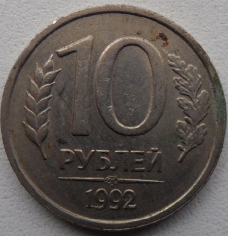 10 рублей 1992 брак гурта [Ласточкин хвост]