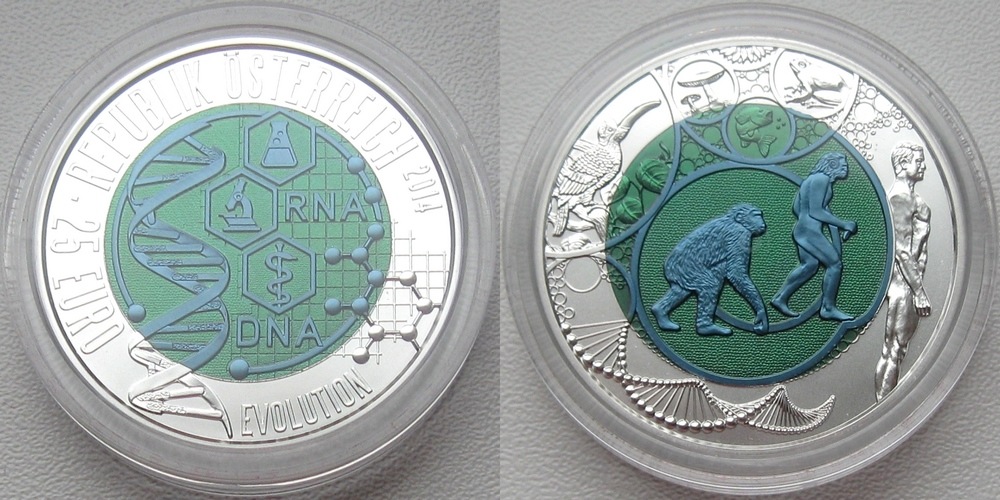 2014 год Австрия 25 евро Эволюция Лучшая биметаллическая монета !