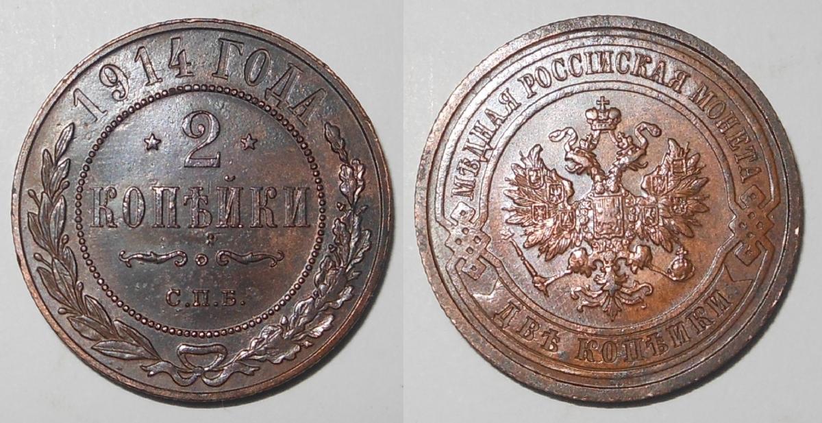 Просьба определить подлинная монета или нет и примерную стоимость. (2 копейки 1914)