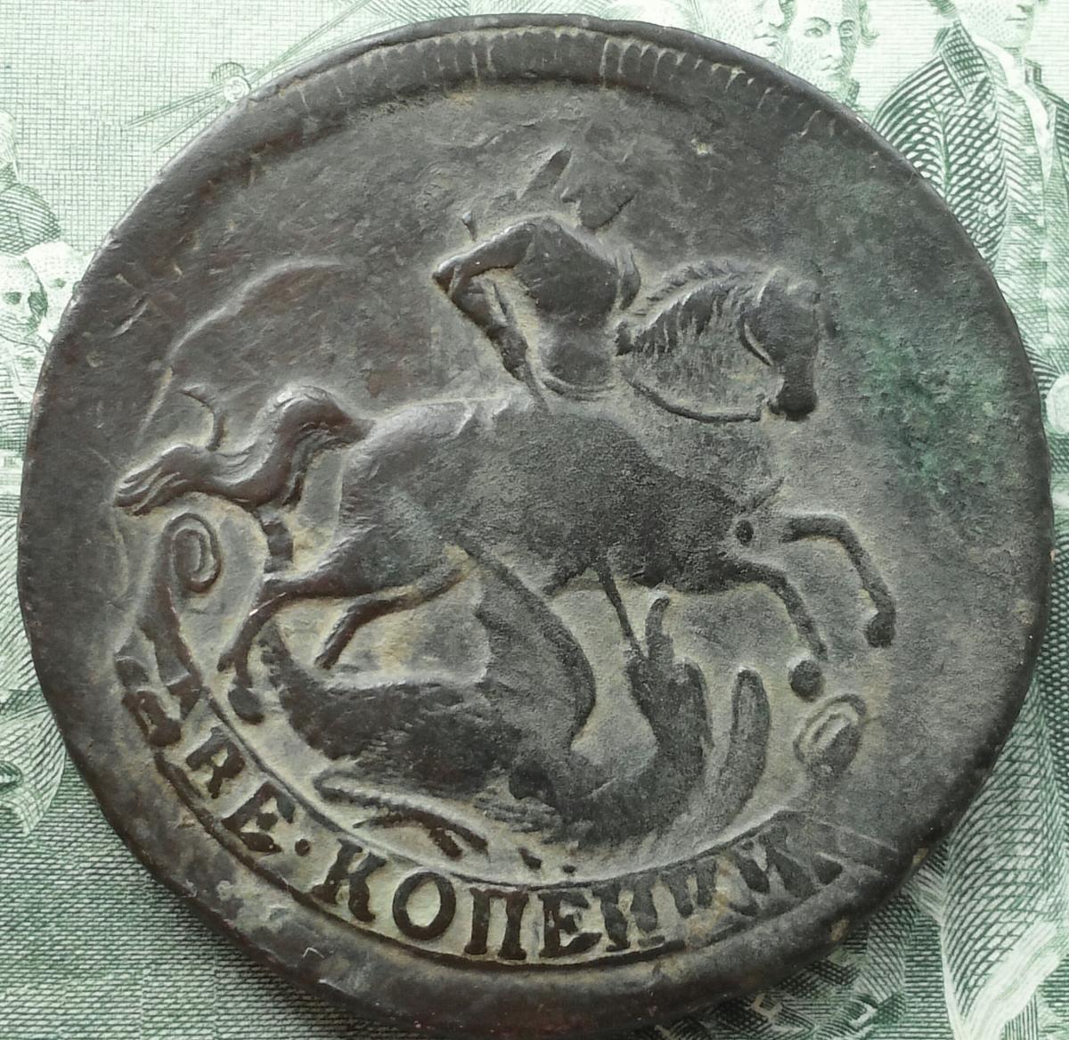 Коллега! Вот моя, тоже без головы, только год 1758. Насколько помню, подарили мне бесплатно, в нагрузку к другим. Правда было это давно. С уважением.