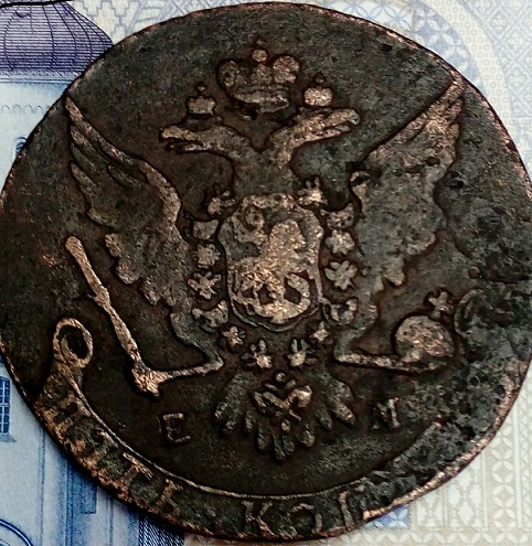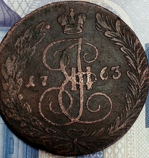 В 1763 году встречаются пятаки перечеканенные из барабанных 10 копеек. Что перечекан, что пятак отчеканенный на гладком кружке, редкими не являются.