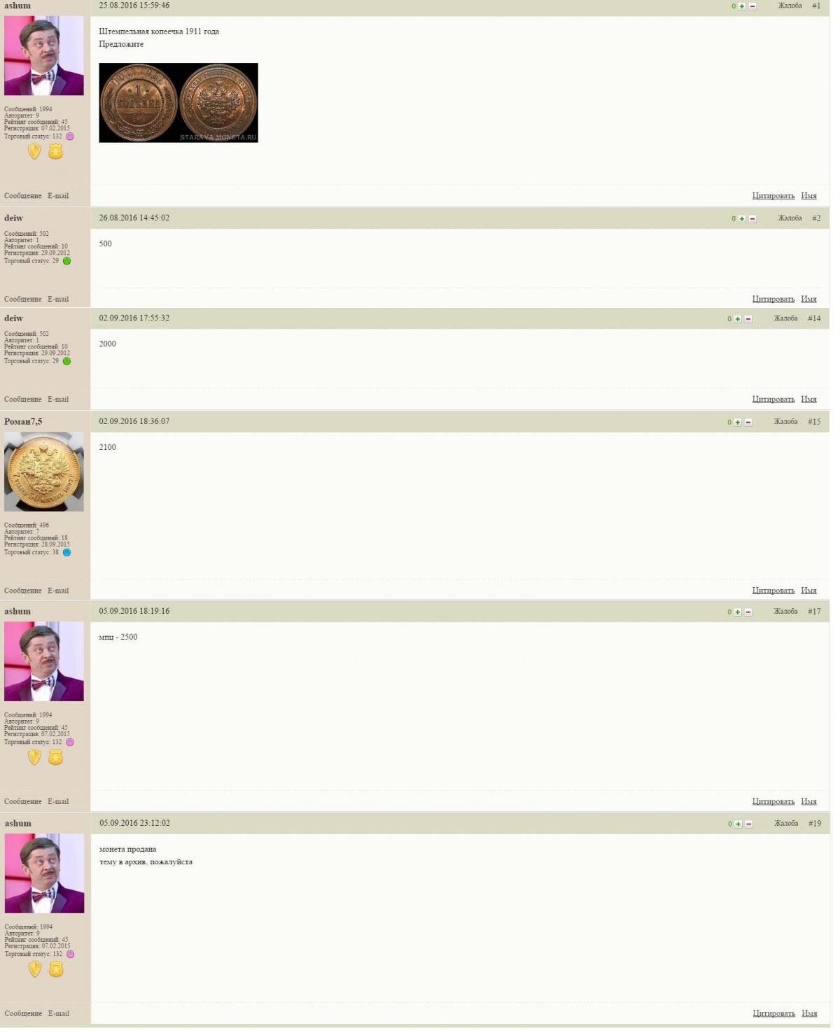 Если кому интересно, монета на торгах - 1 копейка 1911 г. штемпельный блеск/патина до 20.10.2016 22:00 МСК