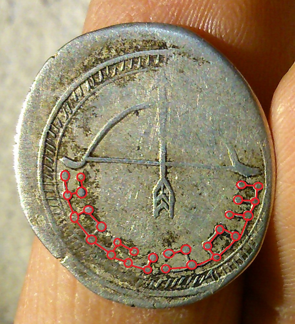 27 окт 2016, 09:52:05 Мы все предполагаем что это не монета. Но надпись на каком языке или какими цифрами? Вы же уже писали, что схематичный еврейский алфавит. И каббалу упоминали. В иудаистике, кстати, лук со стрелой символ то ли истины, то ли мудрости, связанный с Торой. 0 Поделиться сообщением Ссылка на сообщение Поделиться на другие сайты
