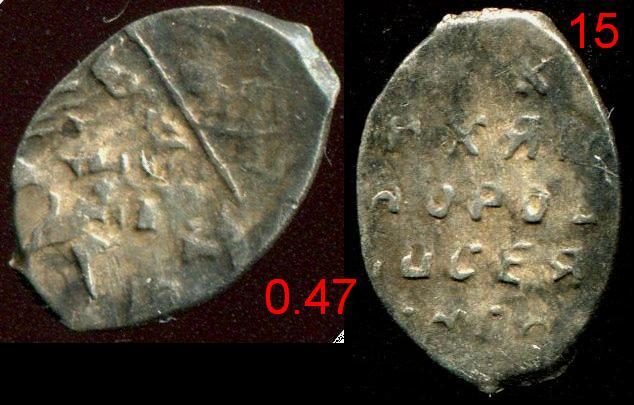 Представленную монету ГП относят к времени Грозного,  хотя данные штемпеля известны  раньше - может я что-то не так понял ?