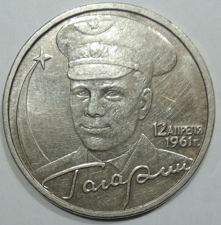 2 рубля 2001 с Гагариным без мд