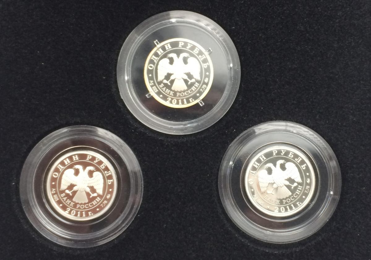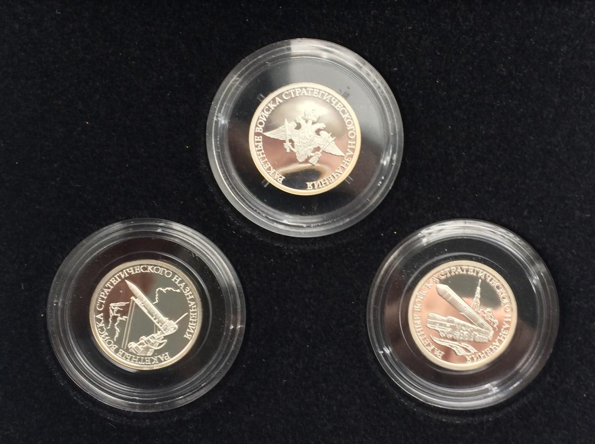 Набор из 3 серебряных монет достоинством 1 рубль 2011 г. "Ракетные войска стратегического назначения".