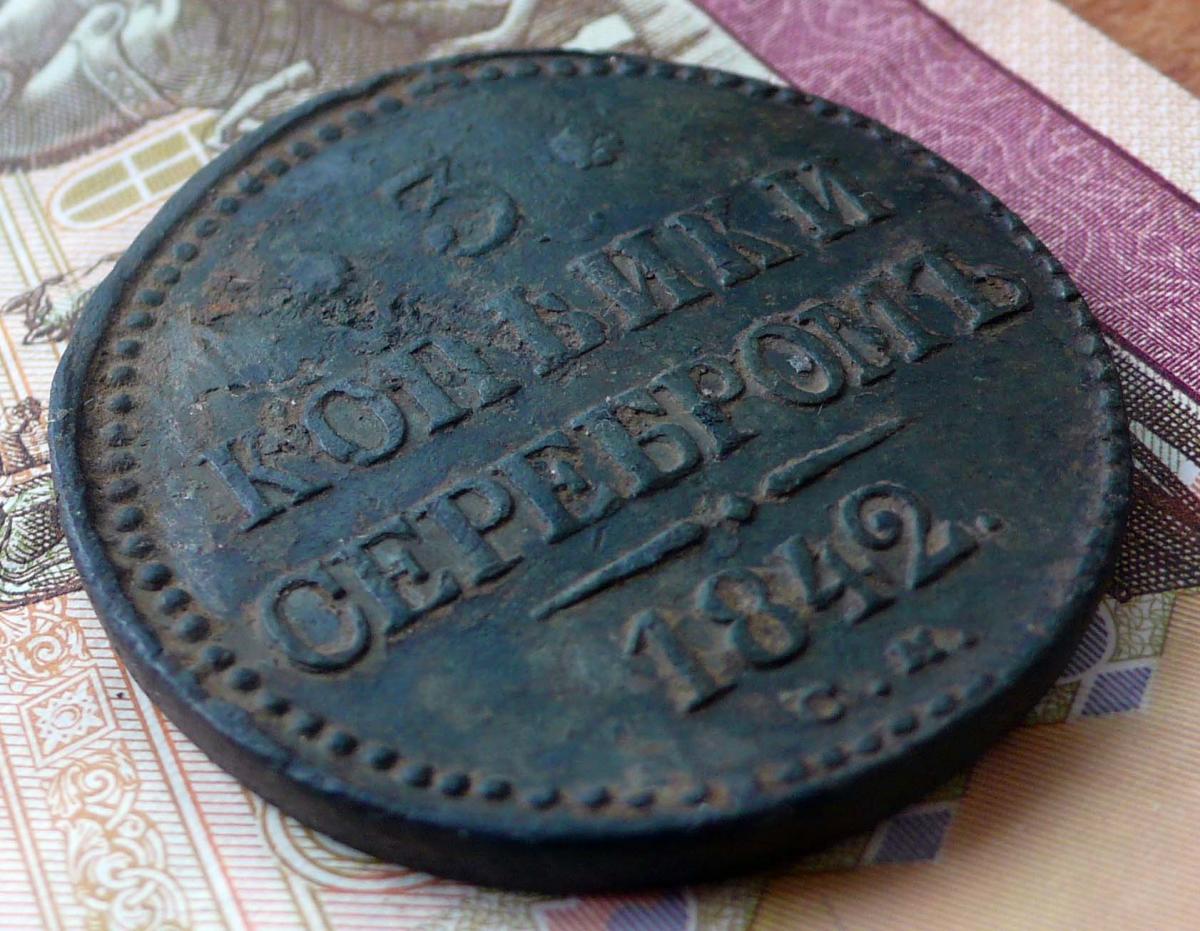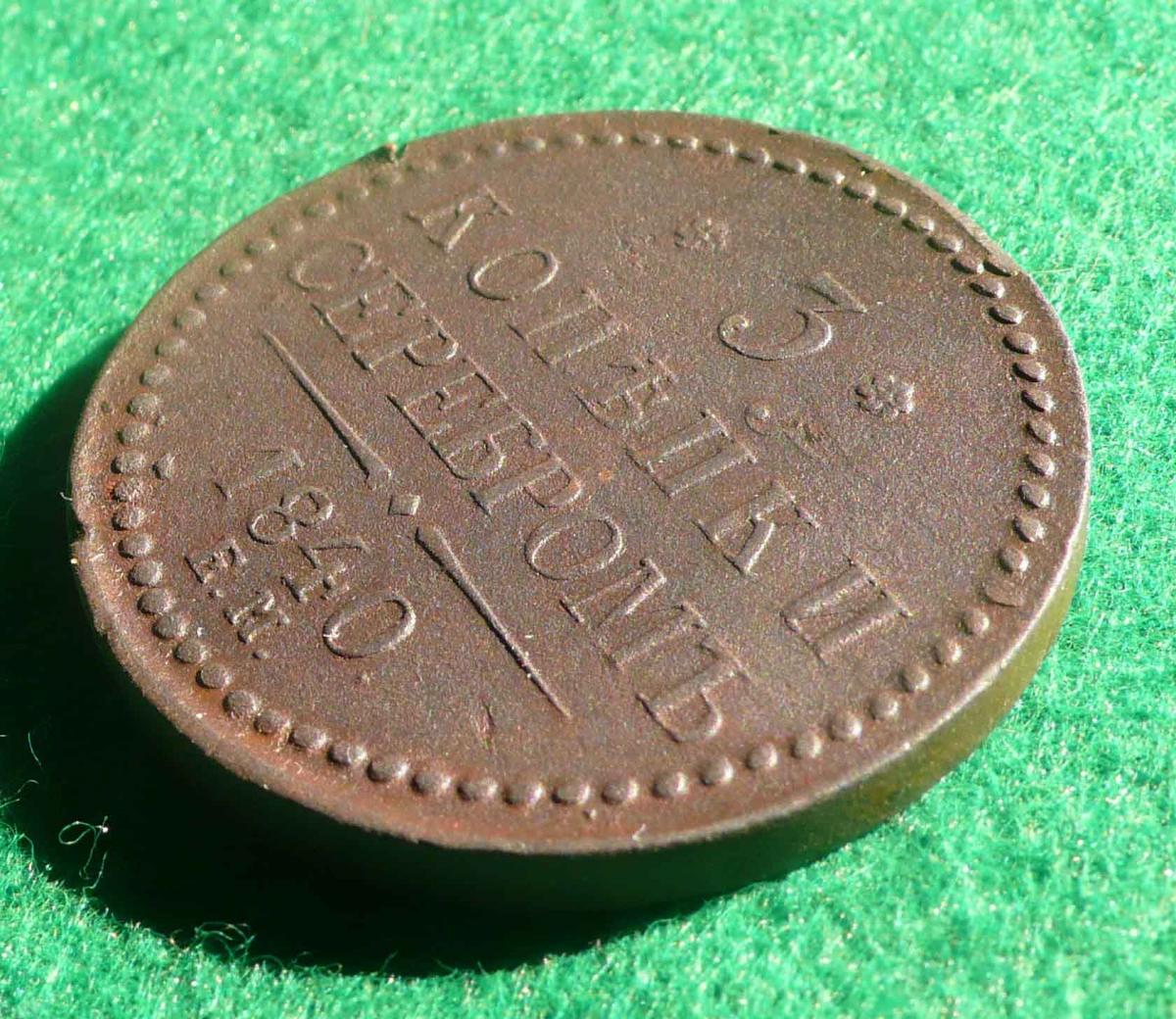 Вторая монетка. 3 копейки 1840 ЕМ. С украшенным вензелем. Состояние понятное... Но все же наверное чего-то стоит, взависимости от того, кому надо.  Вопрос - чего примерно? Фото пересвеченные, в реале темней... вобщем обычный для копанины цвет. Похоже кто-то прикладывал шаловливые ручки... зря конечно.