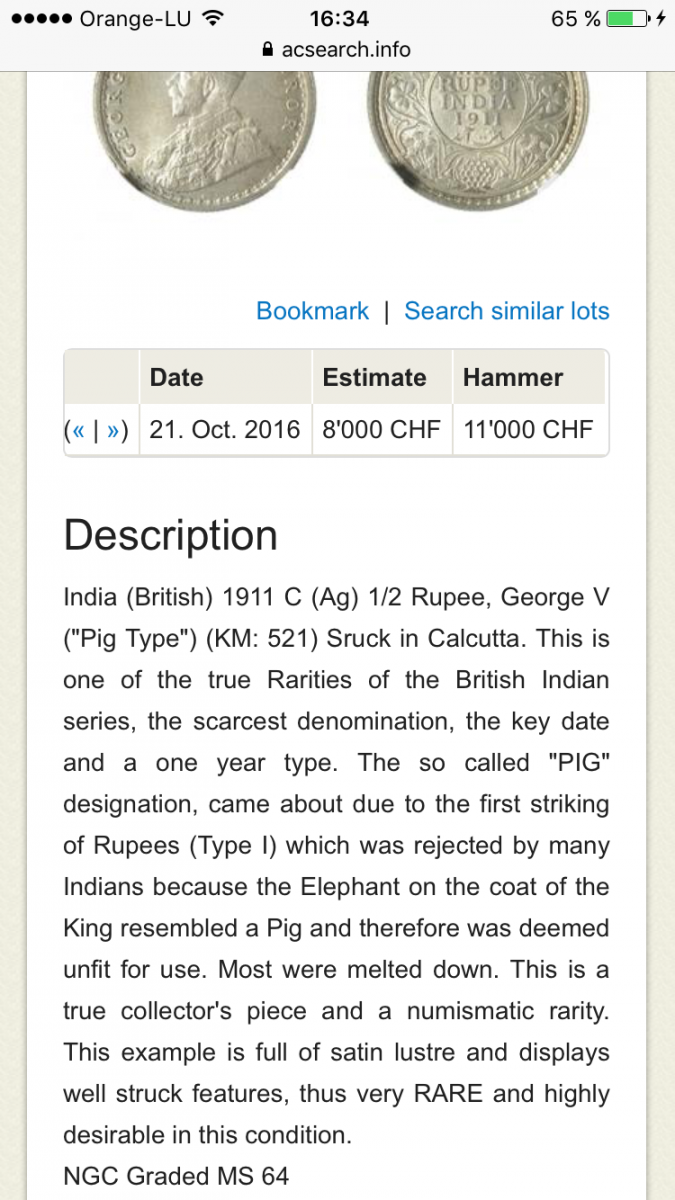 Однако, отмечу, что цена на свинскую рупию всего в 1,5 раза выше цены монет "простых" годов, согласно этой книге.