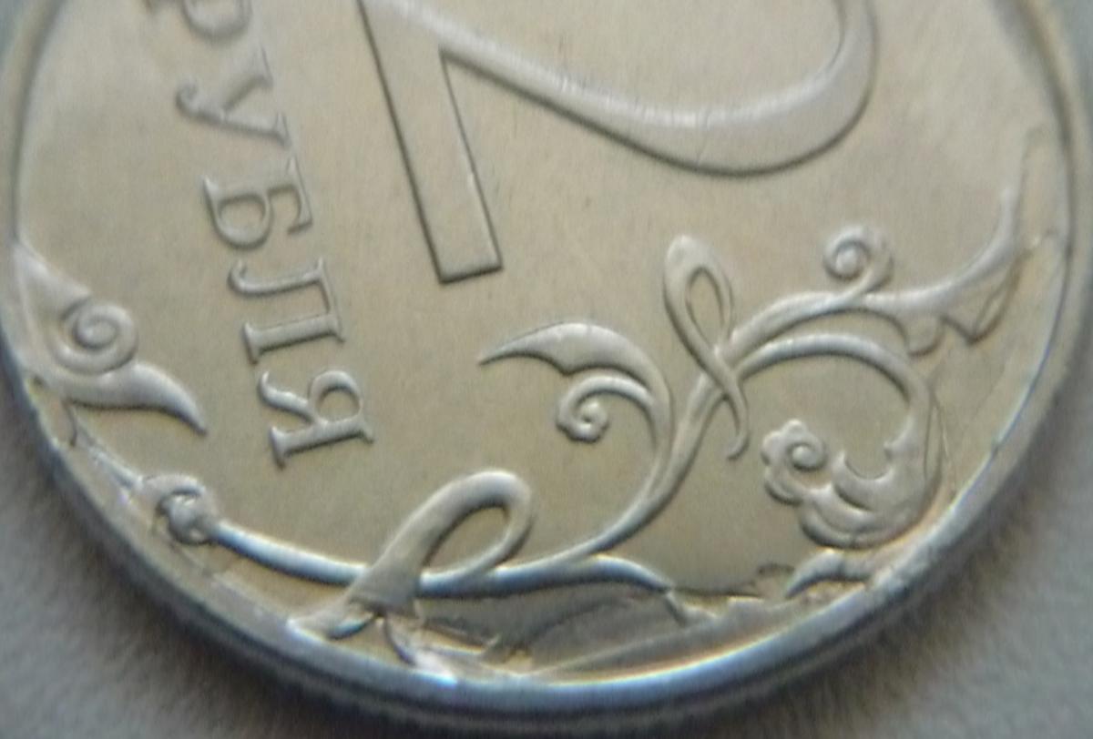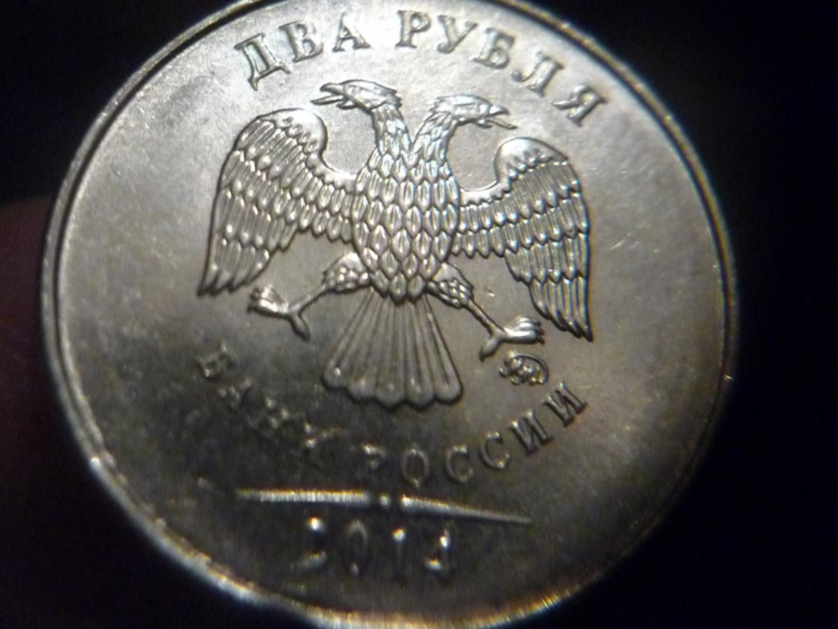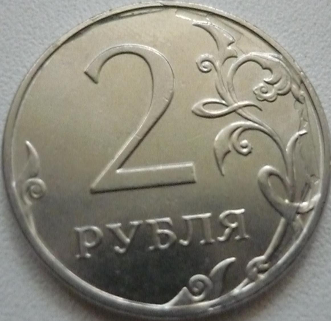 2 рубля 2014 ММД. Брак (загиб покрытия на ревесе).